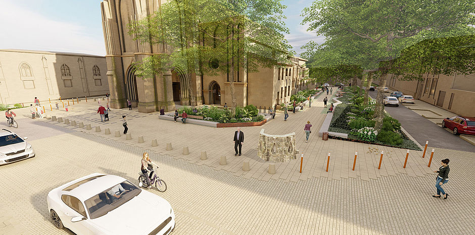 L’aménagement de la place et des voies attenantes permettra notamment de créer un large parvis devant l’église pour faciliter les échanges et les rencontres entre riverains, de mettre en valeur le patrimoine architectural avec une mise en lumière du Monument Historique, de renforcer les îlots de fraicheur par la présence des ormes existants avec la création d’un jardin et la désimperméabilisation des sols, de sécuriser les déplacements et de réorganiser le stationnement.