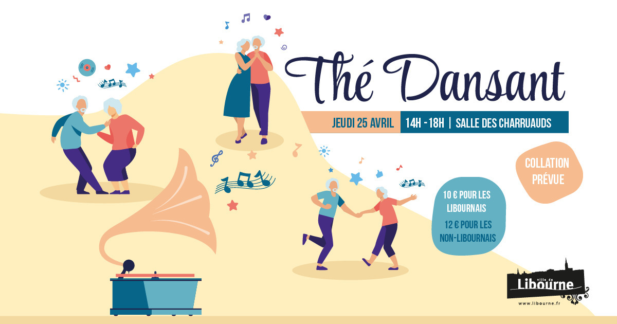 Le25avrilDu 14:00 à 18:00 Salle des Charruauds 54 rue Max Linder Libourne 33500 LibourneThé dansantJEUDI 25 AVRIL 14H -18H | SALLE DES CHARRUAUDDates complémentaires : 25/04/2024, 14:00 - 18:00 Ajouter à mon calendrierJEUDI 25 AVRIL 14H -18H | SALLE DES CHARRUAUD COLLATION PRÉVUE10 € POUR LES LIBOURNAIS12 € POUR LES NON-LIBOURNAIS Sélection de la vueFermerPrécédentRetour à la listeSuivant