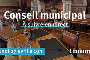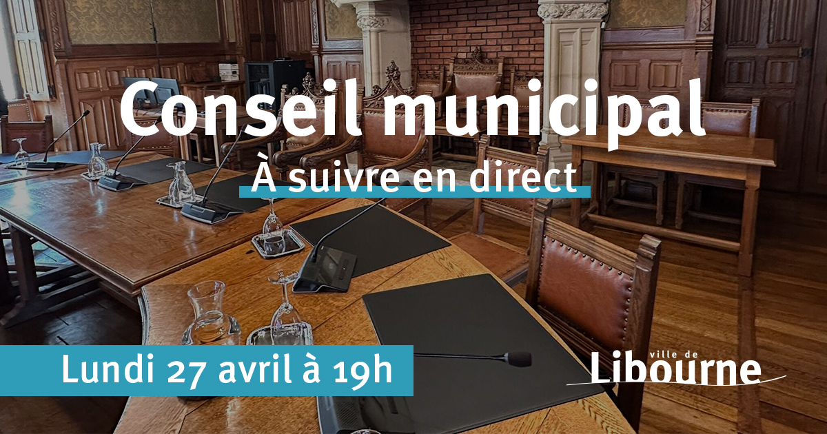 CitoyennetéConseil municipal - 27 avril 2026Visionnez le Conseil municipal de la Ville de Libourne à partir de 19h.Publié le 27 avril 2026 Conseil municipalPrécédentRetour à la listeSuivant