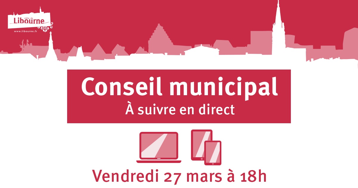 CitoyennetéConseil municipal - 27 mars 2026Visionnez le Conseil municipal de la Ville de Libourne à partir de 18h.Publié le 27 mars 2026 Conseil municipalPrécédentRetour à la listeSuivant
