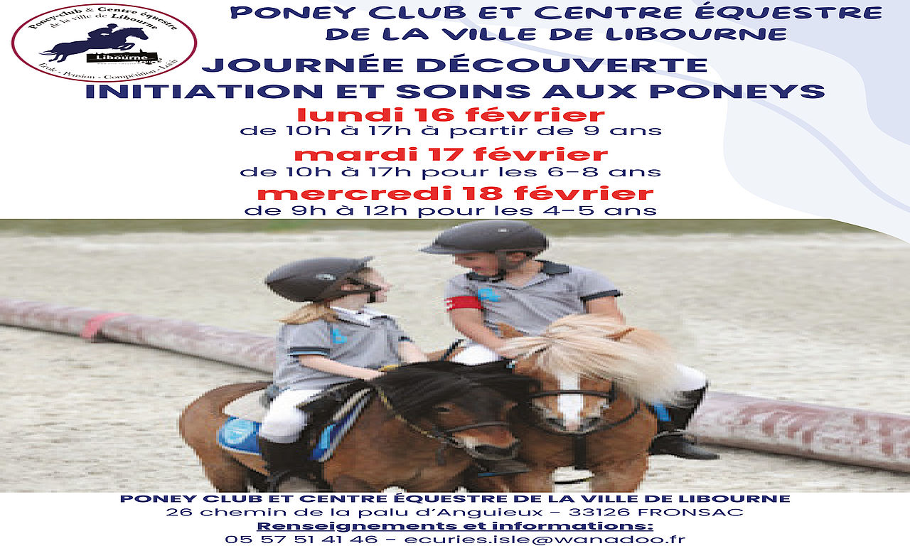 Le poney-club et centre équestre de la ville de Libourne vous invite à venir à ses journées découvertes initiation et soins aux poneys.